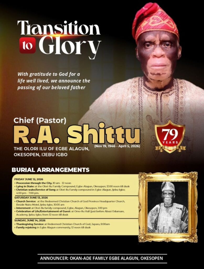 The Olori Ilu of Egbe Alagun, Okesopen, Ijebu Igbo · November 19, 1946 – April 5, 2026 Announced by the Okan-Ade Family, Egbe Alagun, Okesopen
