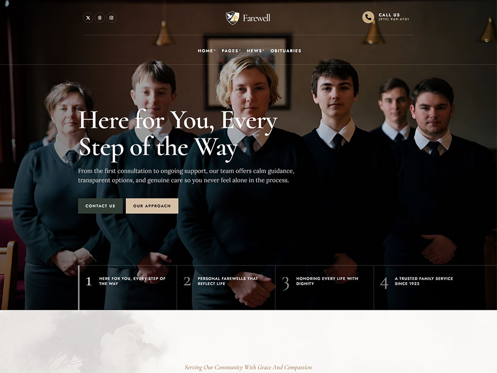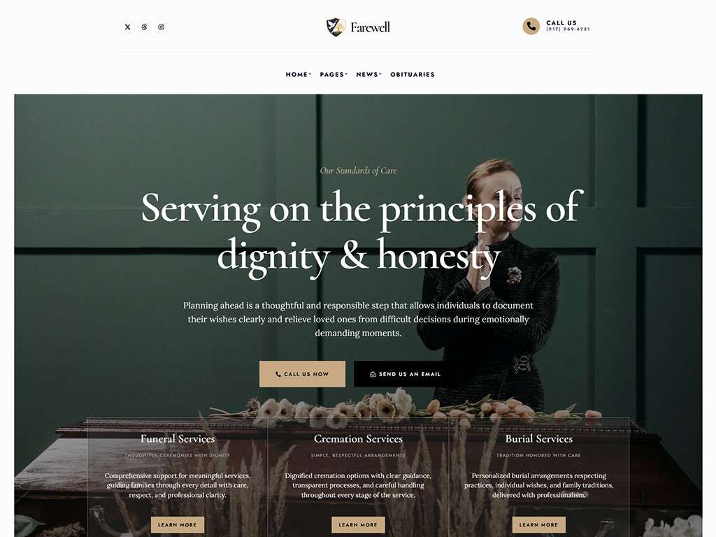 Farewell is a WordPress theme designed specifically for funeral homes, crematories, and memorial service providers who require a dignified, trustworthy, and professional online presence. Created with sensitivity and clarity in mind, Farewell helps businesses communicate essential information with calm authority and respect.